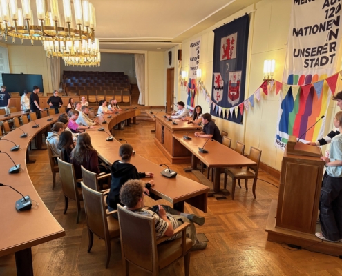 Der Jugendrat Remscheid hat an einem spannenden politischen Planspiel der Friedrich-Ebert-Stiftung in Recklinghausen teilgenommen. Zwei Tage lang schlüpften die Jugendlichen in die Rolle von Kommunalpolitiker:innen, sammelten Themen, bildeten Fraktionen und erarbeiteten eigene Anträge und Anfragen. Höhepunkt war eine fiktive Ratssitzung, in der die Ergebnisse diskutiert wurden.