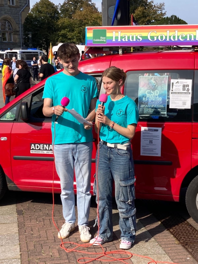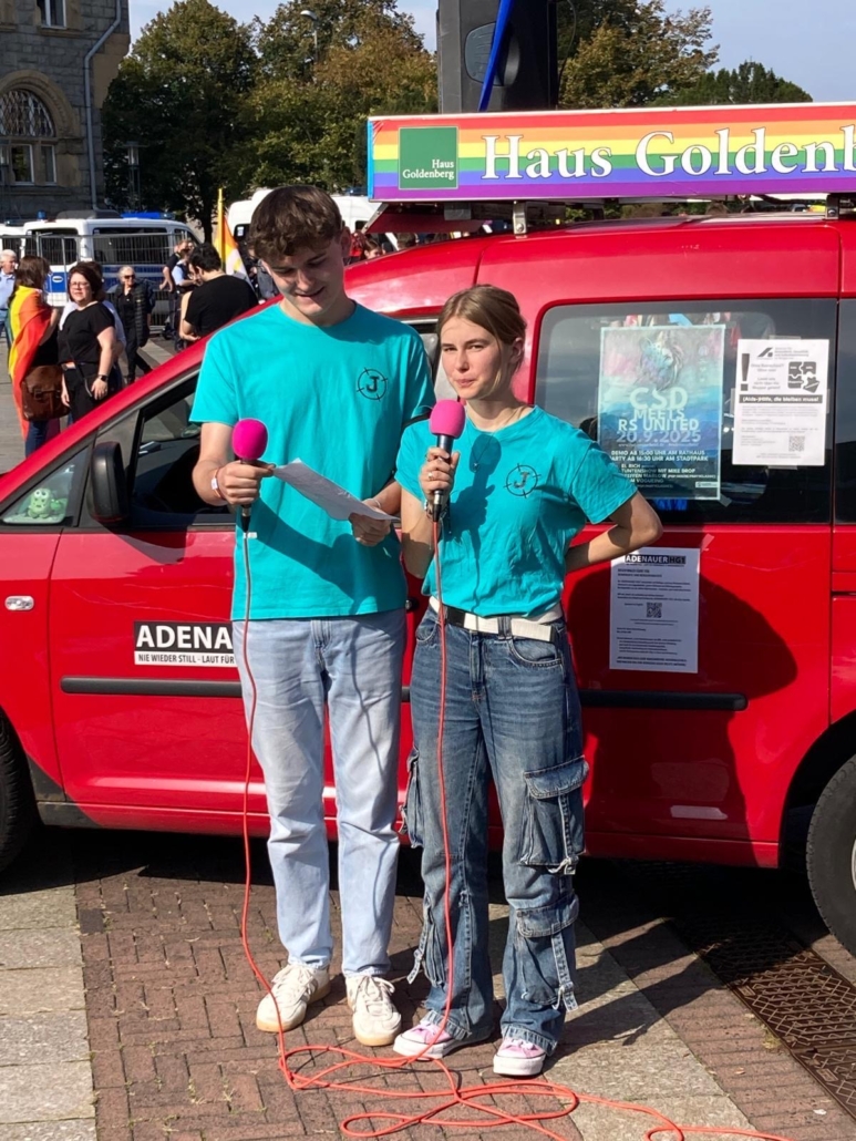 Zwischen politischen Botschaften, Musik und Gesprächen war unser Stand ein echter Hingucker – ob jung oder alt, viele blieben stehen, kamen ins Gespräch oder holten sich ein glitzerndes Andenken ab.