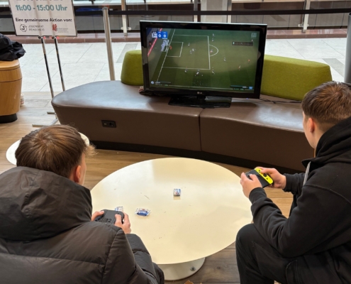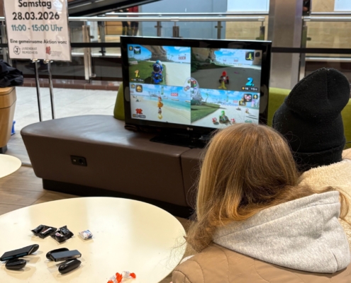 Zahlreiche Jugendliche nutzten die Gelegenheit, gemeinsam zu spielen, sich auszutauschen und miteinander ins Gespräch zu kommen. Bei spannenden Rennen in Mario Kart 8 Deluxe auf der Nintendo Switch wurde gelacht, mitgefiebert und um die besten Plätze gekämpft – unabhängig davon, ob Anfänger oder erfahrene Spieler:innen.