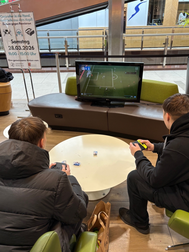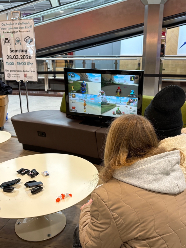 Die Veranstaltung „Zocken gegen Rassismus“, organisiert vom Jugendrat in Kooperation mit der Kraftstation, war ein voller Erfolg. Mitten im Allee-Center Remscheid wurde ein offener Raum geschaffen, in dem Gaming und gesellschaftlicher Dialog auf besondere Weise zusammenkamen.