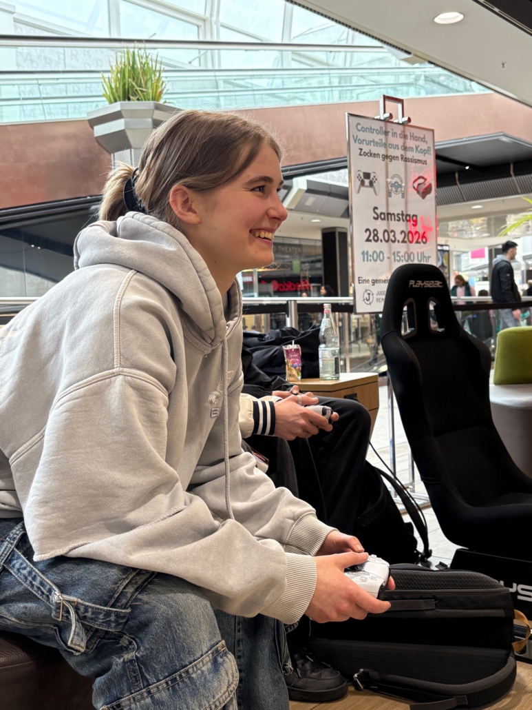 Doch im Mittelpunkt der Veranstaltung standen vor allem die vielen intensiven Gespräche, die während des gemeinsamen Zockens entstanden. Zwischen Rennen und Jubel entwickelten sich ehrliche und persönliche Dialoge über das Thema Rassismus. Jugendliche berichteten von eigenen Erfahrungen, tauschten Perspektiven aus und diskutierten darüber, wie sie sich eine respektvollere und vielfältigere Gesellschaft wünschen.