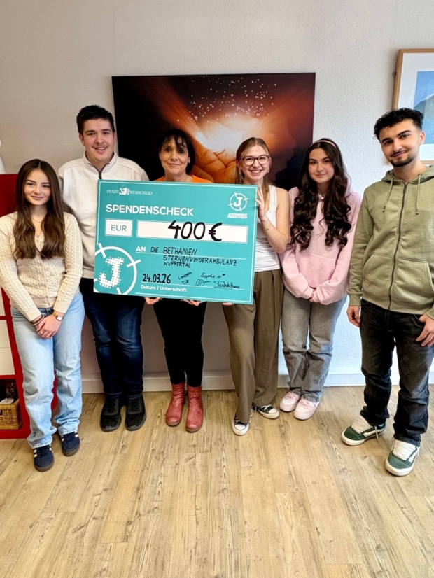 Der Jugendrat Remscheid hat der Ärztlichen Kinderschutzambulanz Bergisch Land einen Spendenscheck in Höhe von 701 Euro überreicht. Das Geld stammt aus dem Verkauf von alkoholfreien Cocktails, die die Mitglieder des Jugendrats anlässlich des Weltkindertags 2024 angeboten hatten.